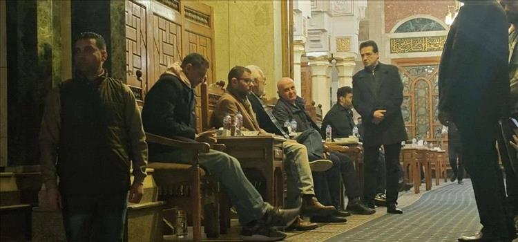 وبعد جلوس الفيشاوي لتلقي العزاء فوجئ بأحد المصورين يلتقط له الصور وهو في حالة انهيار ما جعله ينتفض ليمسك بالموبايل ويحاول أخذه منه ما جعل شقيقه عمر وبعض الموجودين يحاولون تهدئته وفض الاشتباك.