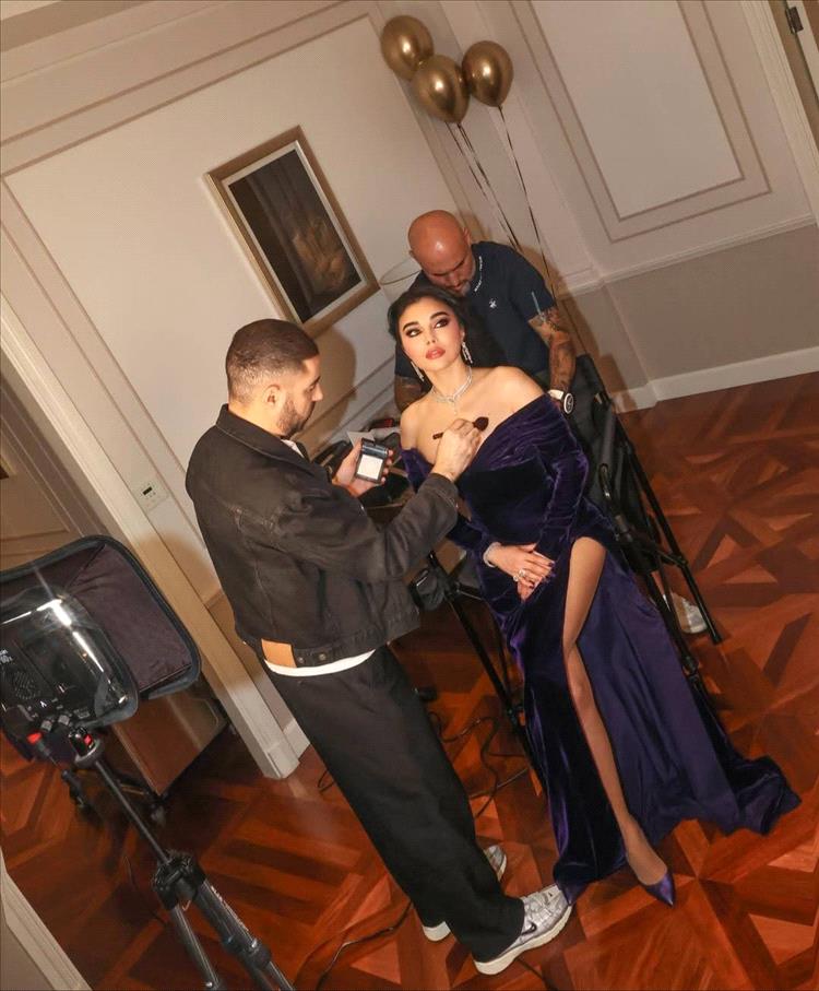 ومن الناحية الجمالية، تركت هيفاء شعرها الأسود الطويل ينسدل بنعومة على ظهرها، وطبّقت مكياجاً قوياً يرتكز على الكحل الأسود وظلال العيون الترابية المفضّلة لها، مع أحمر شفاه باللون الأحمر الفاقع.