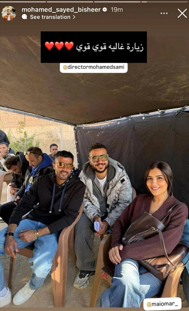 وظهر سامي في الصورة التي نشرها محمد سيد بشير معه وبصحبتهما بطلة العمل مي عمر خلال زيارته المفاجئة الى "اللوكيشن"، وعلّق بشير على الصورة قائلاً: "زيارة غالية أوي أوي".