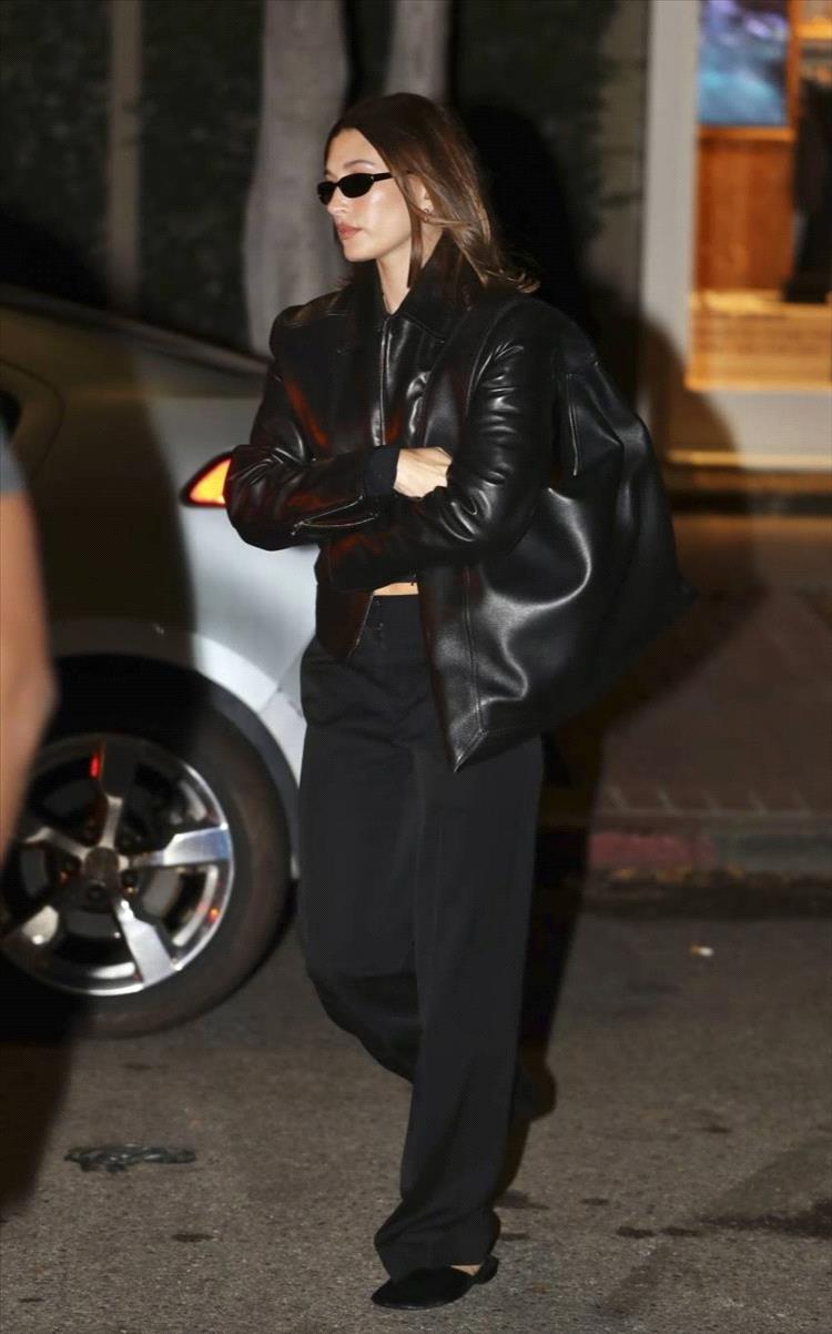 ونسّقت بيبر الحقيبة مع سترة جلدية ذات ياقة أنيقة، وارتدتها مفتوحة لتكشف عن "تي شيرت" قصير. أضفى بنطالها متوسط الارتفاع لمسة من الراحة على إطلالة الجلد، حيث انسدل بقصّة مريحة حتى قدميها.
