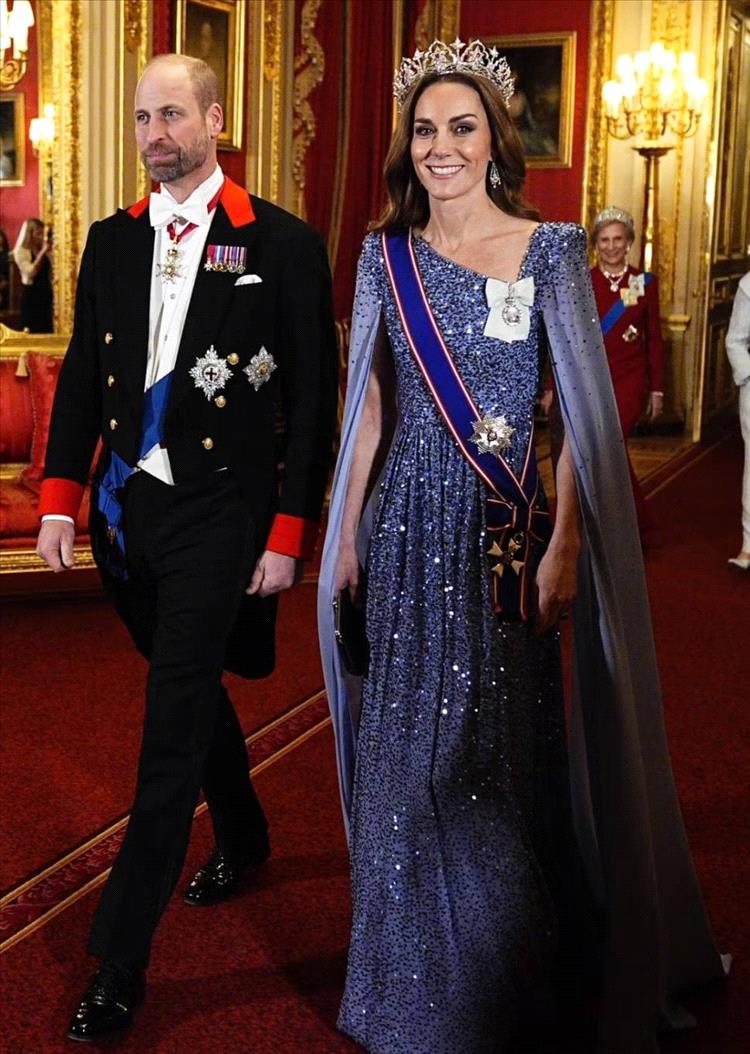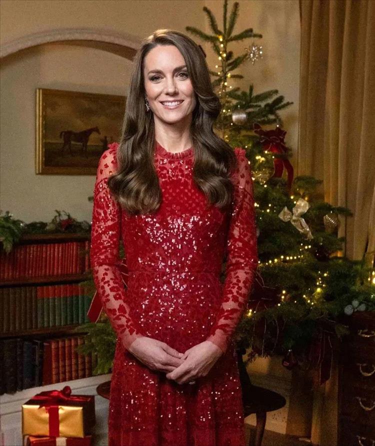 أما في الإطلالات الاحتفالية، فقد خطفت كيت الأنظار بفستان أحمر طويل من الترتر، تميّز بتفاصيل شيفون ناعمة أضفت حركة وانسيابية على التصميم. هذا "اللوك" يعكس جانباً أكثر إشراقاً واحتفالياً من أسلوبها، مع الحفاظ على الأناقة الملكية المعهودة.