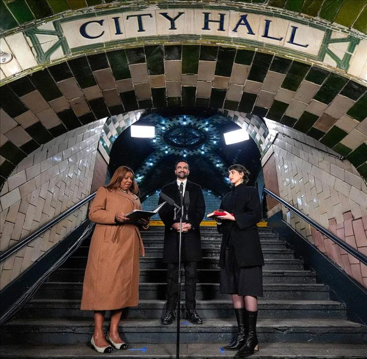 مع دقات منتصف ليل اليوم الأول من العام الجديد، أصبح زهران مامداني رسمياً أول عُمدة مسلم ومن أصول جنوب آسيوية لمدينة نيويورك. وبحضور مجموعة صغيرة من أفراد عائلته المقربين وأعضاء حملته الانتخابية في محطة مترو الأنفاق ببلدية المدينة، أدّى مامداني، وهو اشتراكي ديموقراطي وأحد أصغر رؤساء البلديات المنتخبين في تاريخ نيويورك، اليمين الدستورية أمام المدّعية العامة للولاية ليتيتيا جيمس. ورافقته زوجته، راما دواجى، الفنانة والرسّامة التي سرعان ما أصبح أسلوبها الأنيق محوراً لحملة مامداني الانتخابية وفوزه، في دلالة على تبنّي عقلية "التغيير نحو الأفضل".