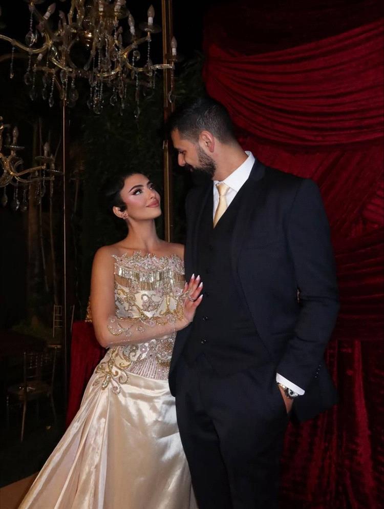 وأكملت شيماء إطلالتها بقفّازات عالية من الشبك ومطرّزة باللون الذهبي بنفس الرسومات الموجودة على الفستان، واستعرضت خاتم خطوبتها بطريقة ناعمة وبدت في غاية الأناقة والجمال.