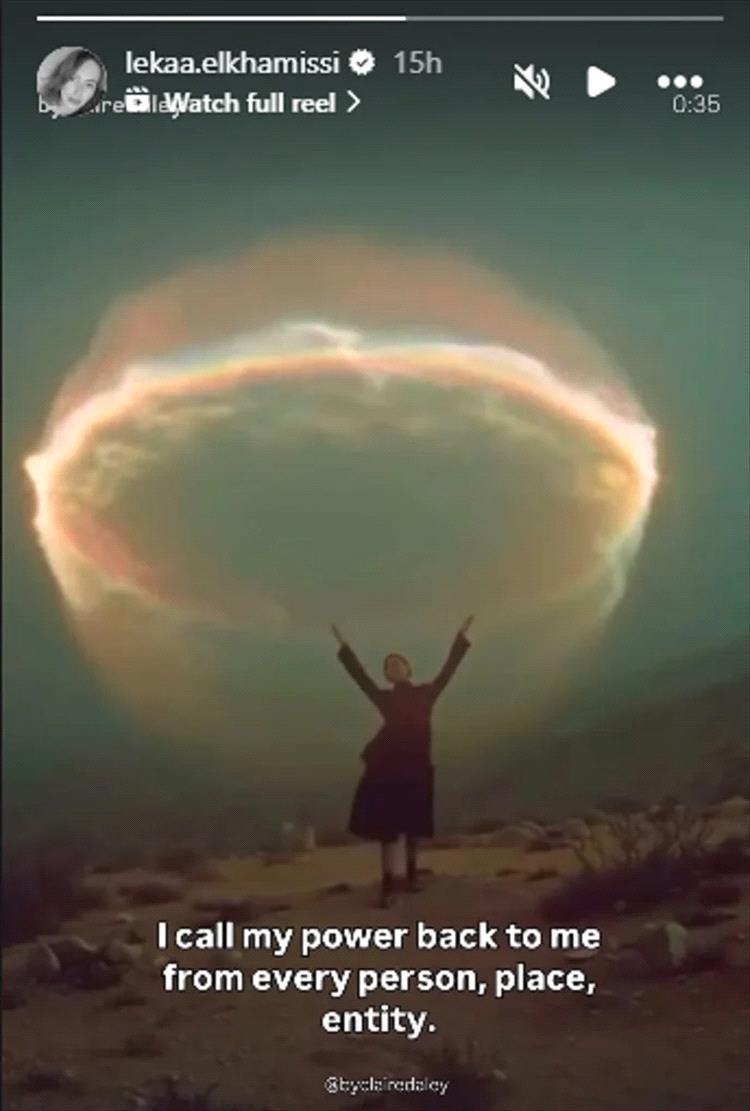 وفي ظل انتشار الفيديو القديم، كتبت لقاء الخميسي عبر خاصية القصص المصوّرة الملحقة بحسابها الخاص في "إنستغرام"، منشوراً كشفت فيه عن استعادتها لقواها في مواجهة الأزمات، حيث نشرت فيديو مولّداً بالذكاء الاصطناعي لفتاة ترقص في الفضاء، وعلّقت عليه بعبارة: "أستعيد قوّتي لنفسي من كل شخص ومكان وكيان".
