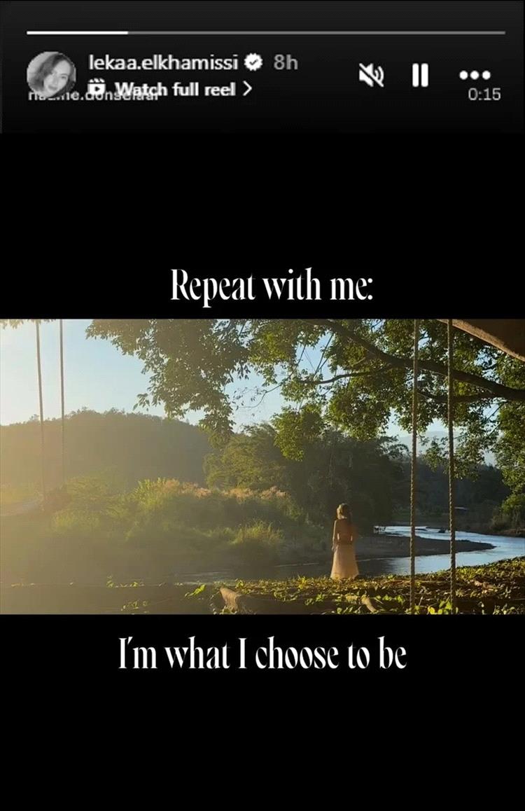 وحرصت لقاء الخميسي على وضع منشورات على خاصية القصص المصورة الملحقة على حسابها الخاص بـ"إنستغرام" تصف بها حالتها النفسية، حيث وضعت مقطع فيديو لفتاة تقف وسط الطبيعة وكتبت لقاء على الفيديو قائلة "كرر ورائي"، ووضعت على الفيديو أغنية تقول كلماتها: " أنا لست ما حدث لي.. أنا ما اخترت أن أكون .. كل خطوة آخذها أتغير، أشرق.. الماضي يذوب أمام عينيَّ"، في إشارة الى تناسيها الأزمة وقرارها بفتح صفحة جديدة مع زوجها.