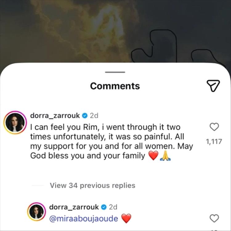 وتابعت: "كل دعمي لكِ ولجميع النساء بارك الله فيكِ وفي عائلتكِ".