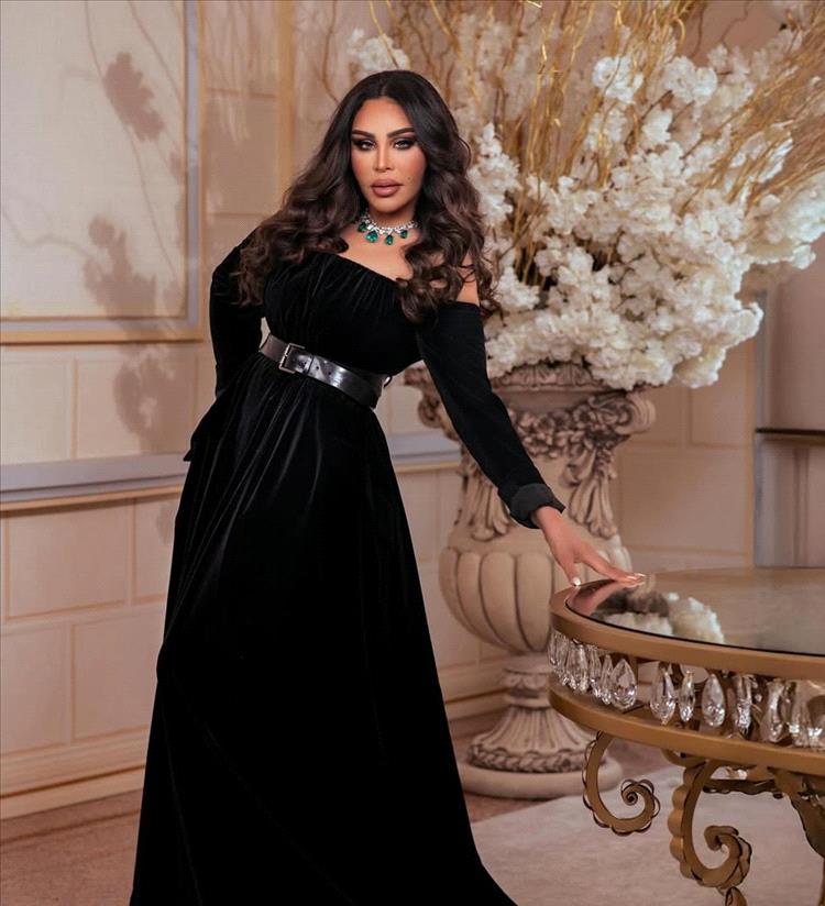 في أحدث إطلالة لها، تألقت أحلام بفستان أسود مصنوع من المخمل الفاخر، جاء بقصة أوف-شولدر أنيقة أبرزت جمال الكتفين ومنحت اللوك طابعًا أنثويًا جذابًا. تميز الفستان بقصة ضيقة من الأعلى انسجمت مع قوامها، بينما جاءت التنورة واسعة من الأسفل لتضيف لمسة درامية وفخمة. ولإبراز الخصر، اختارت حزامًا من الجلد، أضفى على الإطلالة لمسة عصرية وكسر الطابع الكلاسيكي للمخمل بأسلوب جريء.