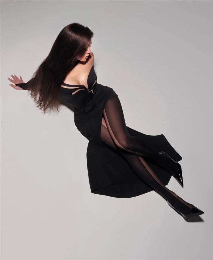 وأكملت "الديفا" إطلالتها الأنيقة بموضة الجوارب الطويلة والشفّافة التي تحتوي على خطوط طولية معتمة بتصميم مميز ومختلف أضاف سحراً خاصاً إلى "اللوك" الأنيق، الذي نسّقت معه حذاء أسود بكعب عالٍ ومقدّمة مدبّبة، وأطلّت من دون أي أكسسوار أو مجوهرات.
