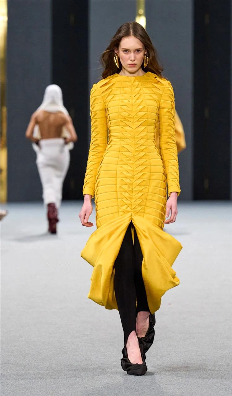 الطبقات الثقيلة، الكشاكش الكبيرة، أو التطريزات الكثيرة في مناطق معينة قد تجعل الجسم يبدو أعرض مما هو في الواقع. استخدمي التفاصيل البارزة بحذر في المناطق التي تريدين تسليط الضوء عليها.