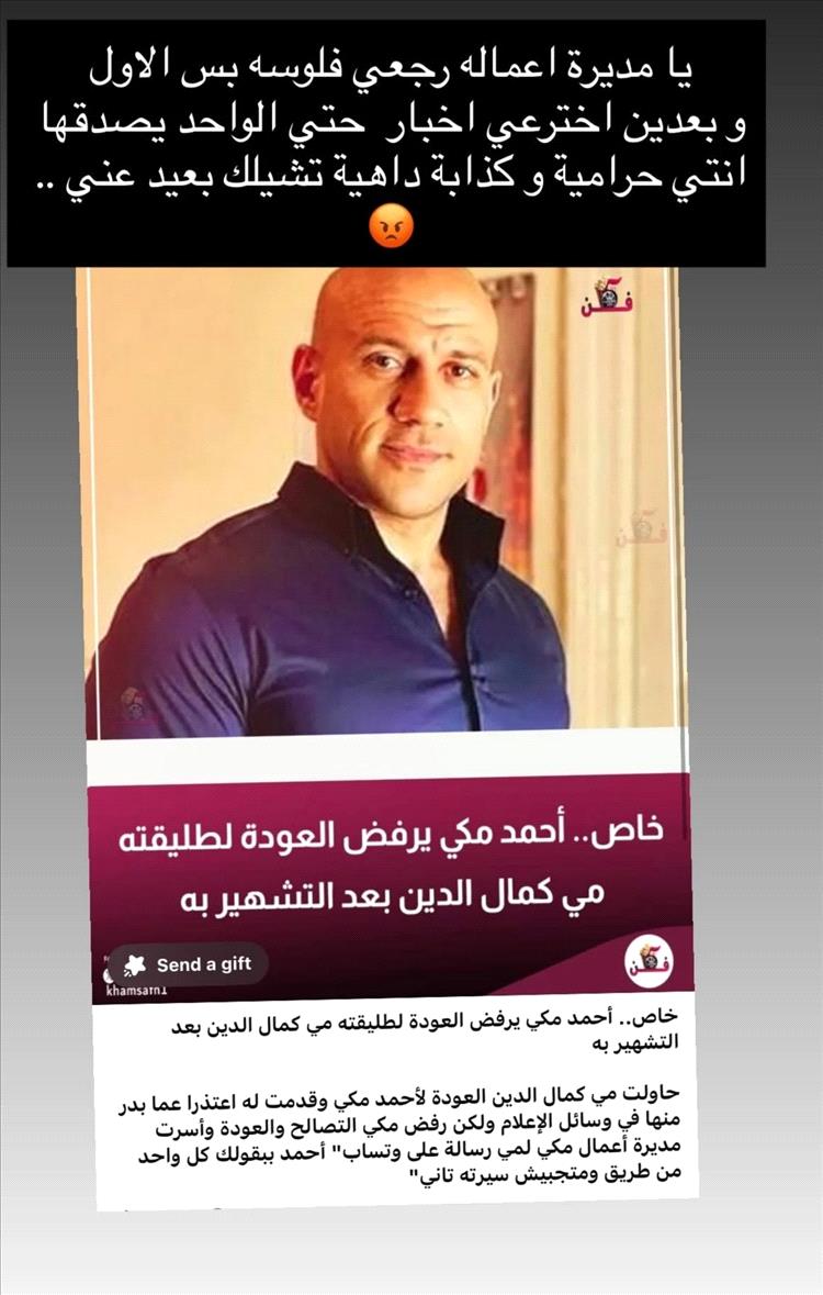 وعادت مي كمال الدين، طليقة أحمد مكي لتنشر خبرًا آخر عن محاولتها العودة الى مكي ورفضه العودة، وعلّقت عليه بقولها: "يا مديرة أعماله رجعي فلوسه بس الأول وبعدين اخترعي أخبار حتى الواحد يصدقها.. أنتي حرامية وكذابة داهية تشيلك بعيد عني".