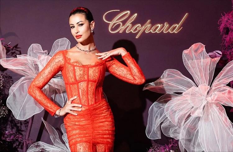 وأكملت إطلالتها الناعمة بحذاء نسائي باللون الذهبي وتزينت بمجوهرات ماسية ناعمة من "شوبارد" (Chopard) عبارة عن أقراط متدلية بتصميم ناعم يناسب إطلالتها الفخمة والمبهرة.