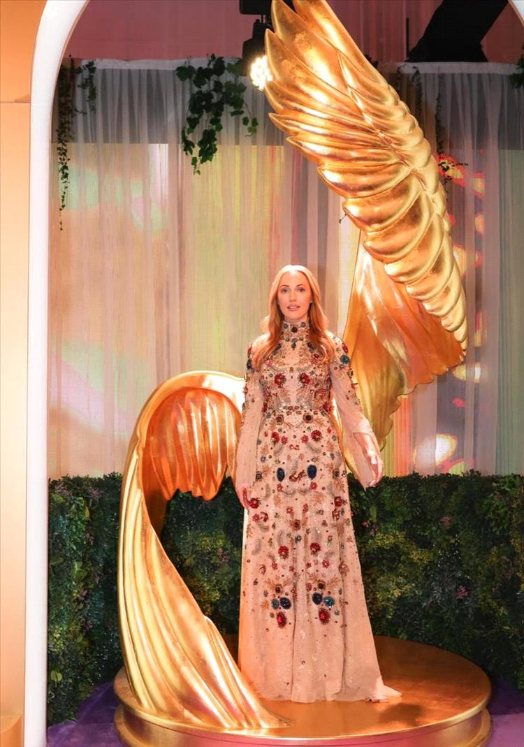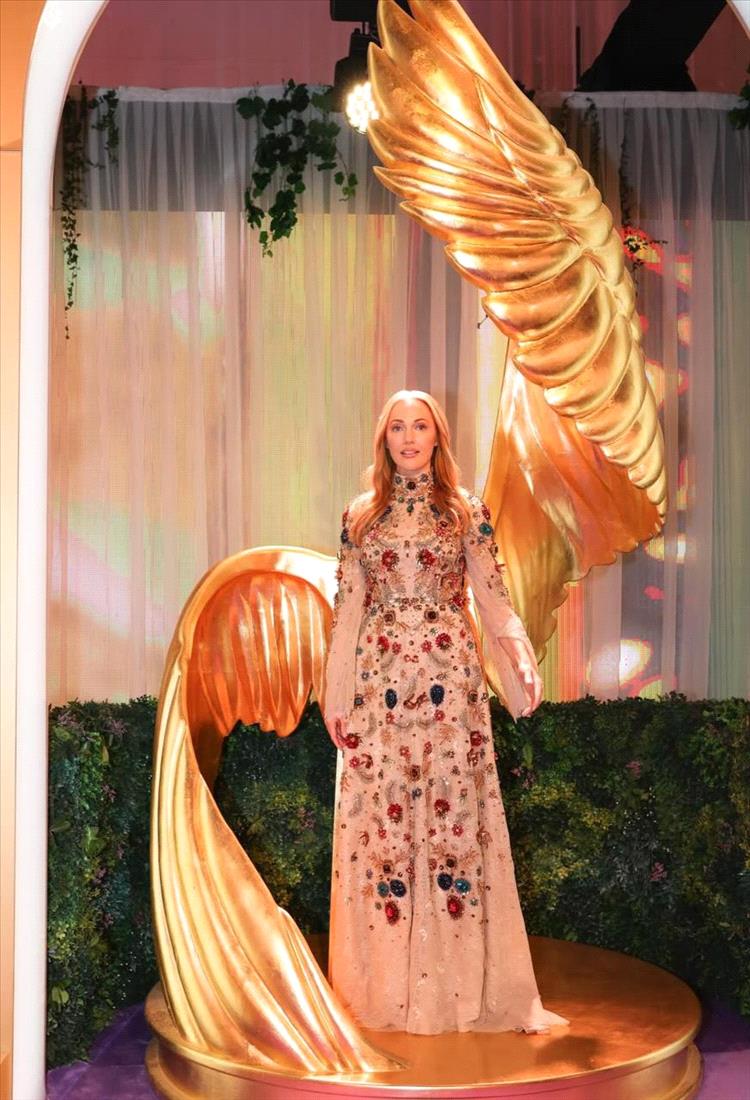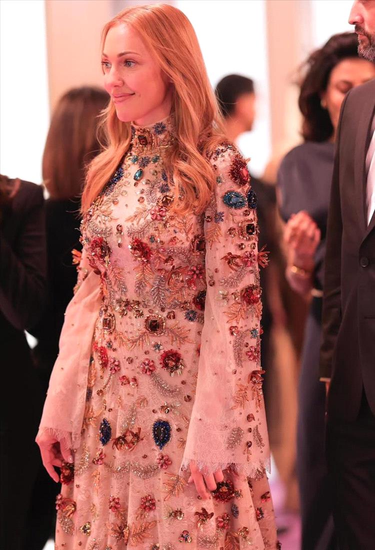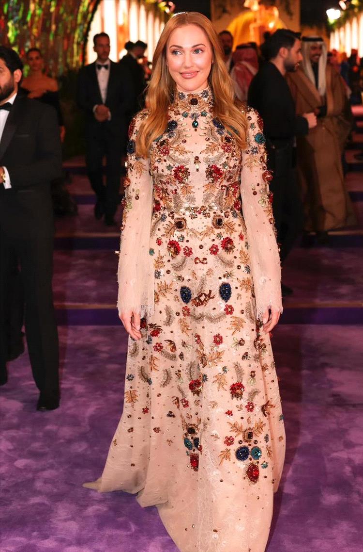 مشت النجمة العالمية على السجادة الخزامية (Lavender Carpet) بفستان فخم من مجموعة The Muse – Haute Couture 2025 من تصميم الثنائي خالد ومروان، في تجسيد راقٍ للفخامة المعاصرة والأنوثة الراقية. تميّز الفستان بلونه الآسر وتفاصيله الراقية المرصّعة بالأحجار الكريمة، حيث انعكست الحرفية العالية والدقّة المتناهية في التنفيذ في كل تفصيل.