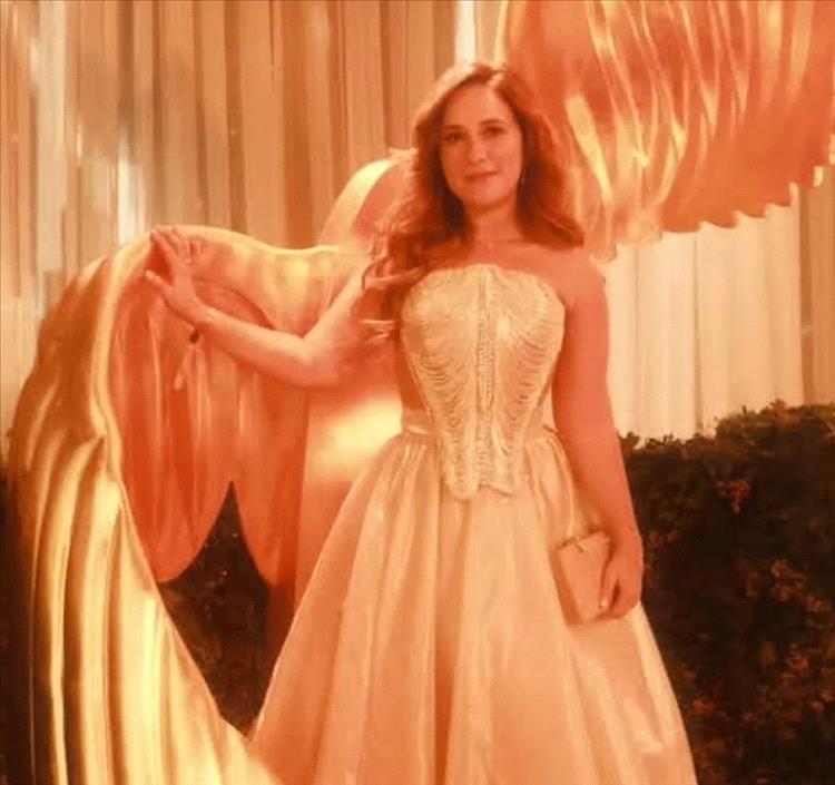 وأحدثت النجمة المصرية ضجة كبيرة بين متابعيها بإطلالتها التي اختارتها من مجموعة المصمّمة المصرية فريدة تمراز، وجاء الفستان طويلاً باللون الأبيض العاجي المتلألئ، وتميّز بقصته الغريبة وغير التقليدية بقماش شفّاف وشكل هندسي على شكل شرنقة يغطّي الصدر، وتتخلله تطريزات على شكل سلاسل باللونين الفضي والذهبي، وينسدل الفستان بتنورة واسعة من الساتان.