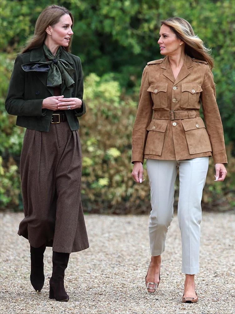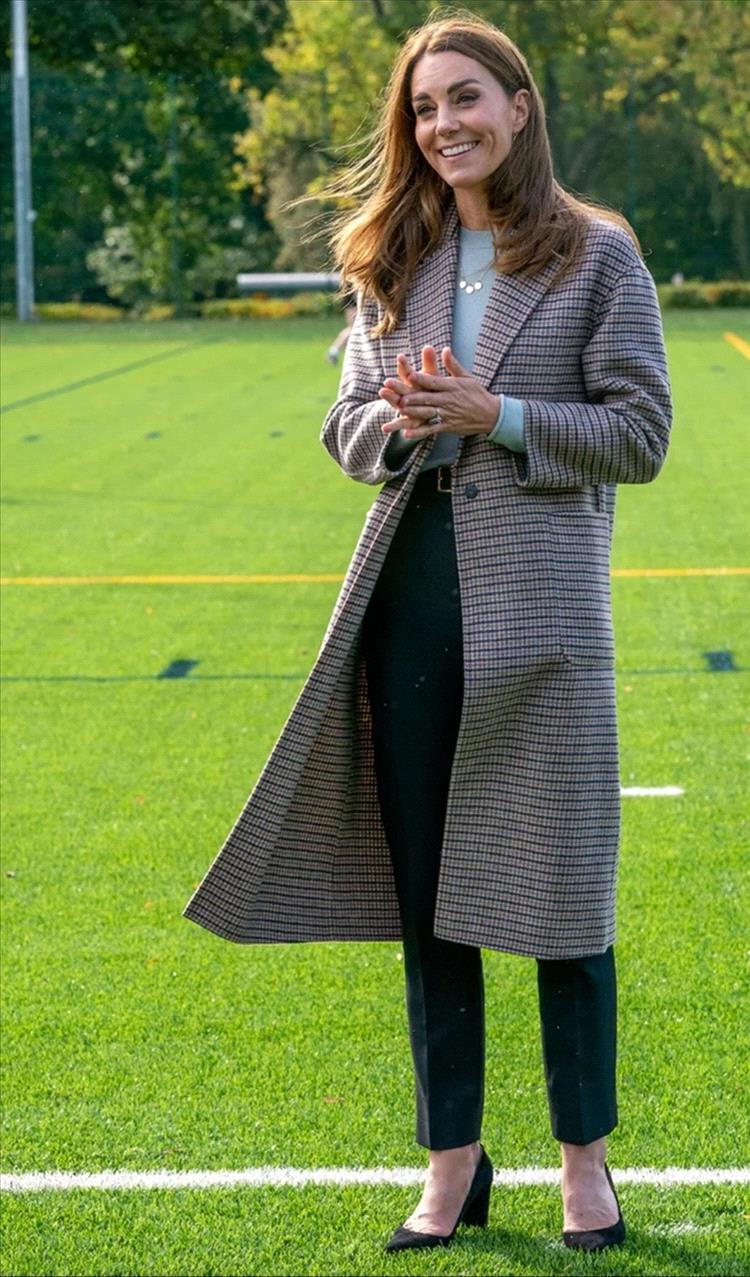 تعتمد كيت أحياناً المعاطف المزيّنة بياقات الفرو، في خيار يجمع بين الفخامة والدفء العملي. تضيف هذه التفاصيل لمسة ملكية واضحة على الإطلالة، وتمنح المعطف طابعاً شتوياً أنيقاً، من دون أن تفقد البساطة التي تميز أسلوبها العام.
