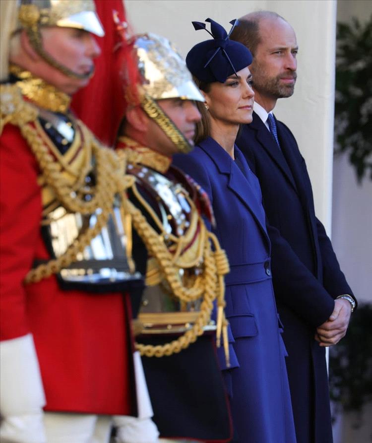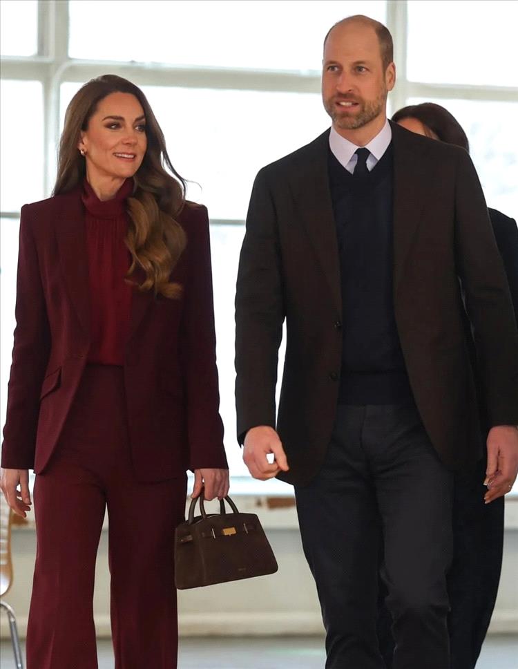 تُعدّ البدلة الكلاسيكية باللون البورغندي من أبرز اختيارات كيت ميدلتون الجريئة والراقية في الشتاء. هذا اللون العميق يعكس قوة وأناقة، ويشكل بديلاً مثالياً للألوان التقليدية كالأسود والكحلي. وغالباً ما تنسّقها مع إكسسوارات بسيطة لتبقى البدلة محور الإطلالة.