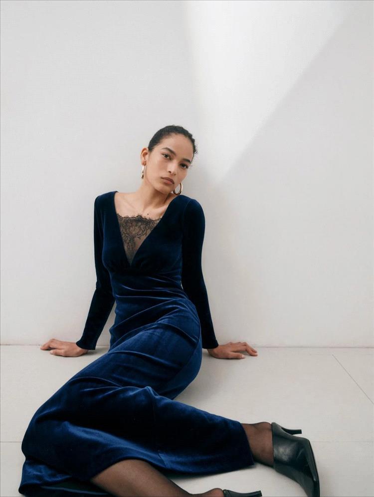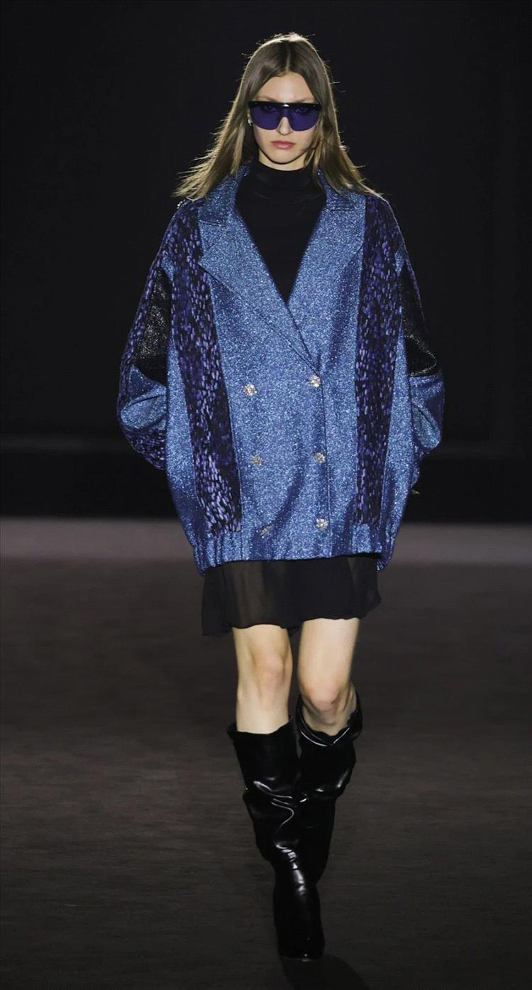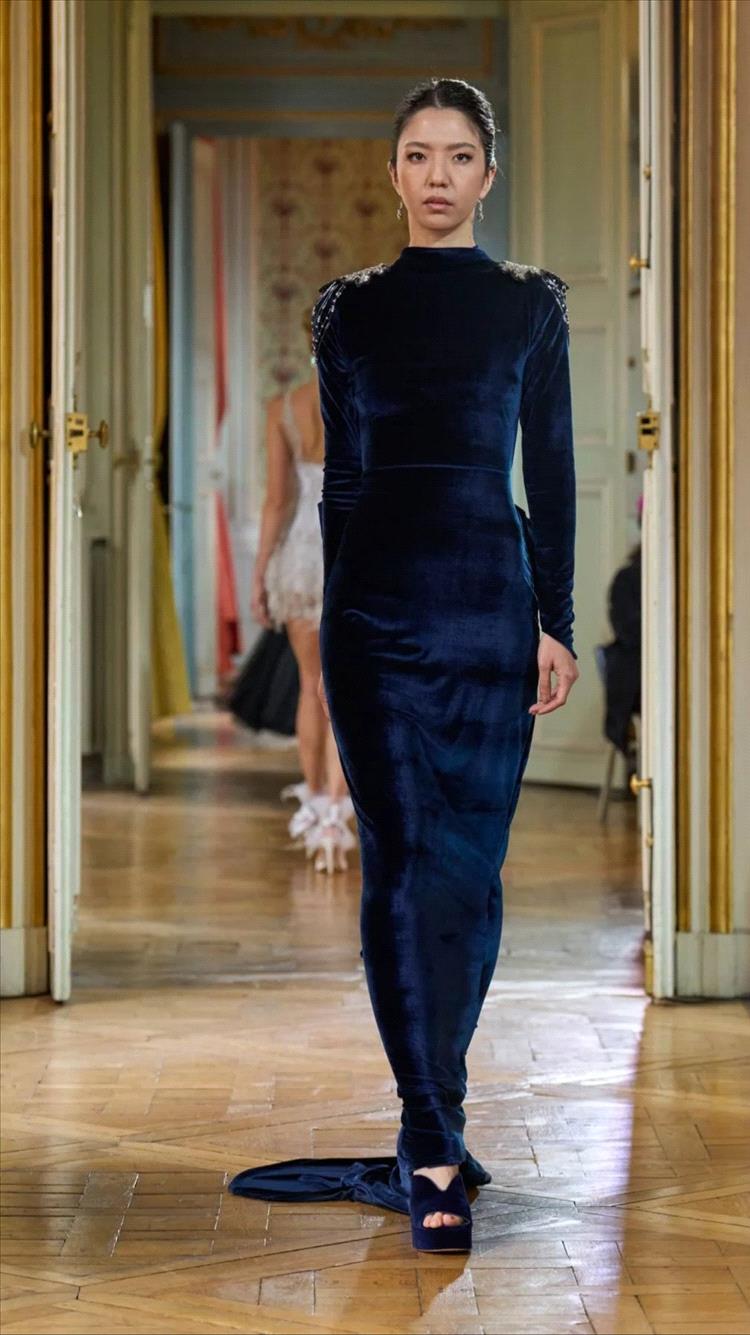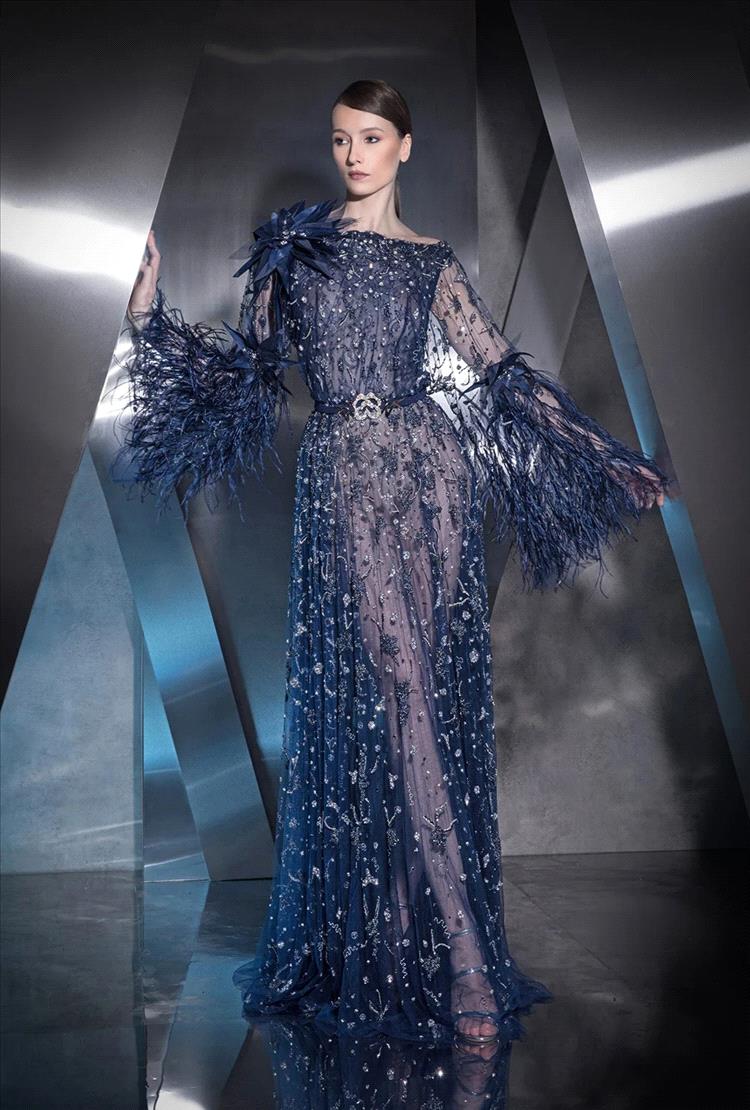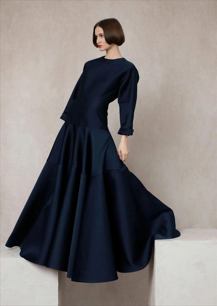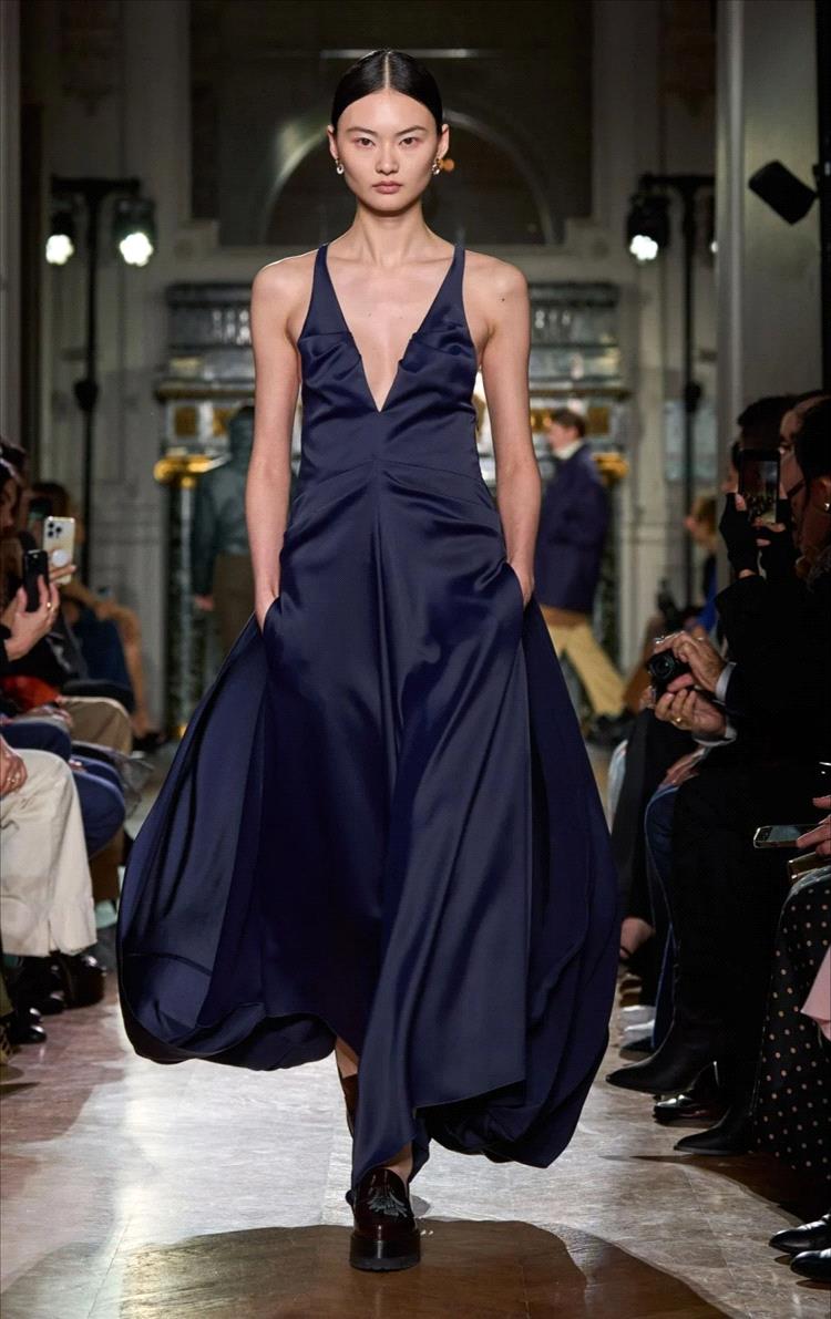 برز اللون الكحلي هذا الموسم في تصاميم عصرية تحمل قصّات جريئة وتفاصيل هندسية، سواء في الفساتين الميدي والماكسي، أو في الأطقم العصرية المنسّقة. كما كان خياراً لافتاً في فساتين المناسبات الخاصة، حيث حلّ بديلاً أنيقاً للأسود، خاصة عند تنفيذه بأقمشة فاخرة كالحرير والمخمل، أو تزيينه بتطريزات معدنية فضّية وذهبية تضفي عليه بريقاً راقياً من دون إفراط.
