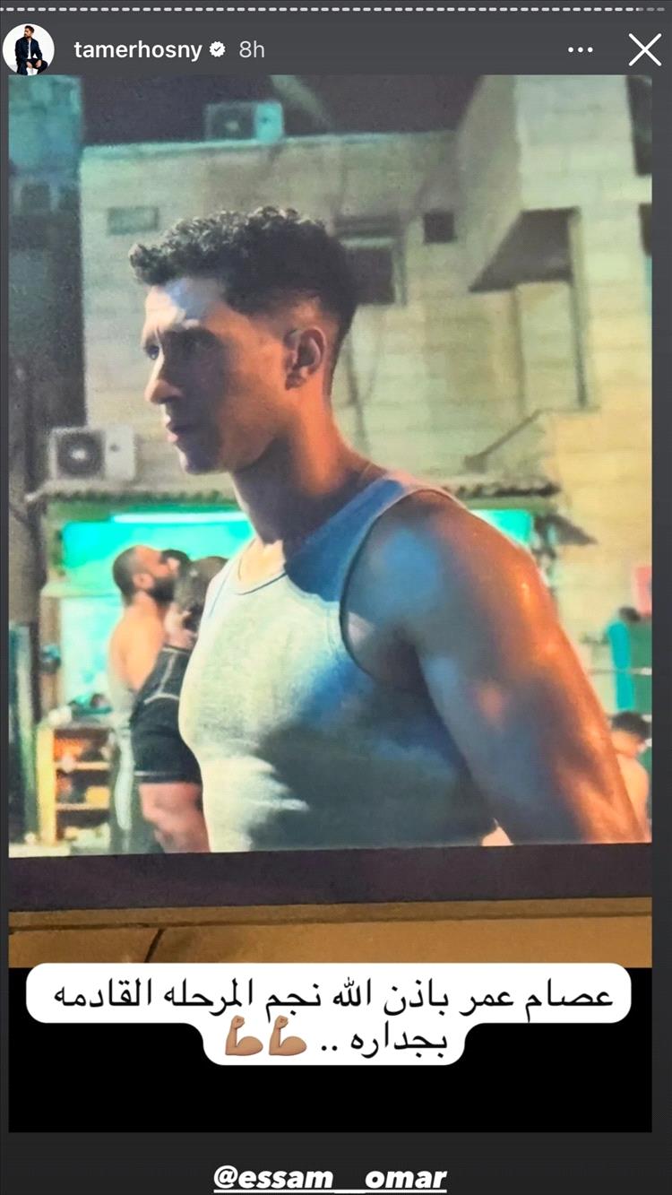 وعلّق تامر على صورة عصام عمر كاشفاً عن رأيه في أدائه، مؤكداً أنه سيكون النجم القادم في عالم التمثيل، حيث قال: "عصام عمر بإذن الله نجم المرحلة المقبلة بجدارة".