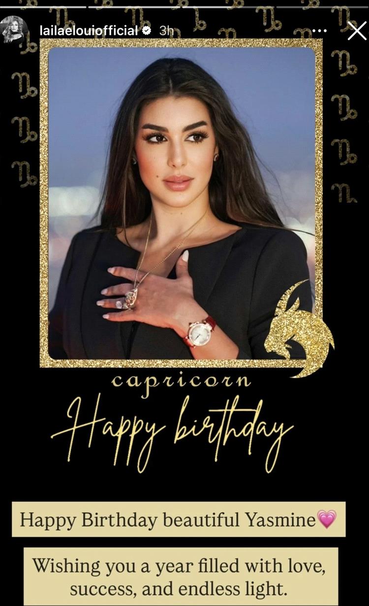 وجاءت رسالة ليلى الى ياسمين صبري في يوم ميلادها الـ38 الذي تحتفل به في 21 كانون الثاني (يناير).