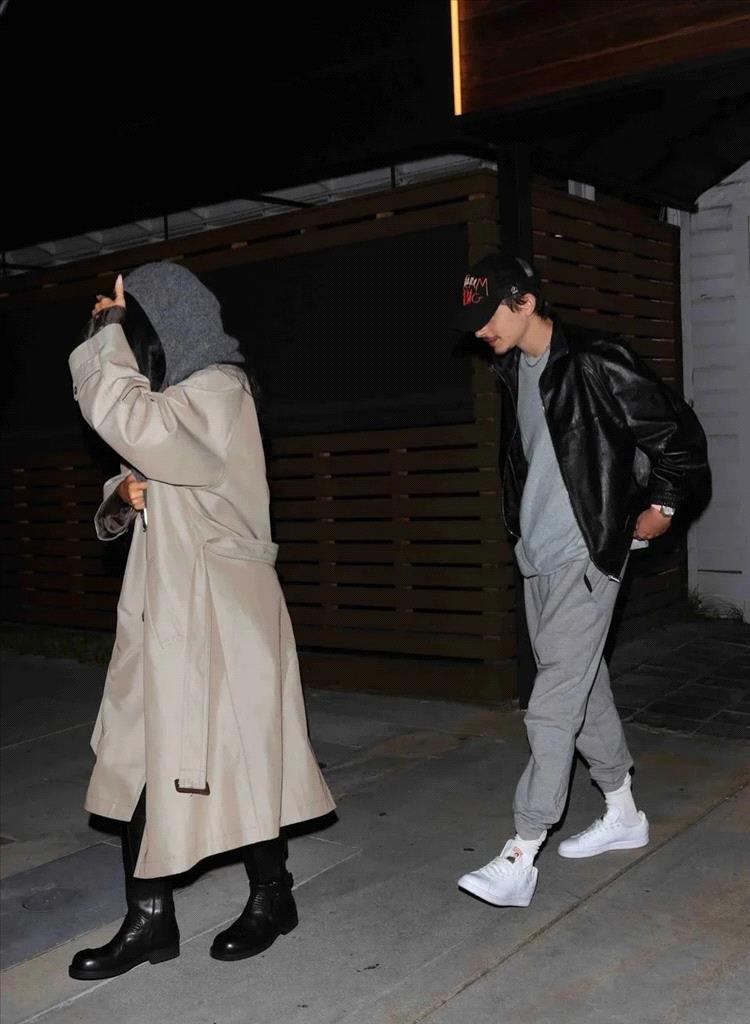 اختارت كايلي وحبيبها ألواناً هادئة وبسيطة لهذه الأمسية، حيث ارتدت كايلي، وهي أم لطفلين، معطفاً طويلاً أنيقاً باللون البيج، وانتعلت حذاءً أسود بكعب عالٍ. واستغلّت موضة الأوشحة الرائجة، فزيّنت إطلالتها بوشاح فاخر من الكشمير الرمادي. (كما ارتدت كمامة سوداء في محاولة جادة للتخفّي).