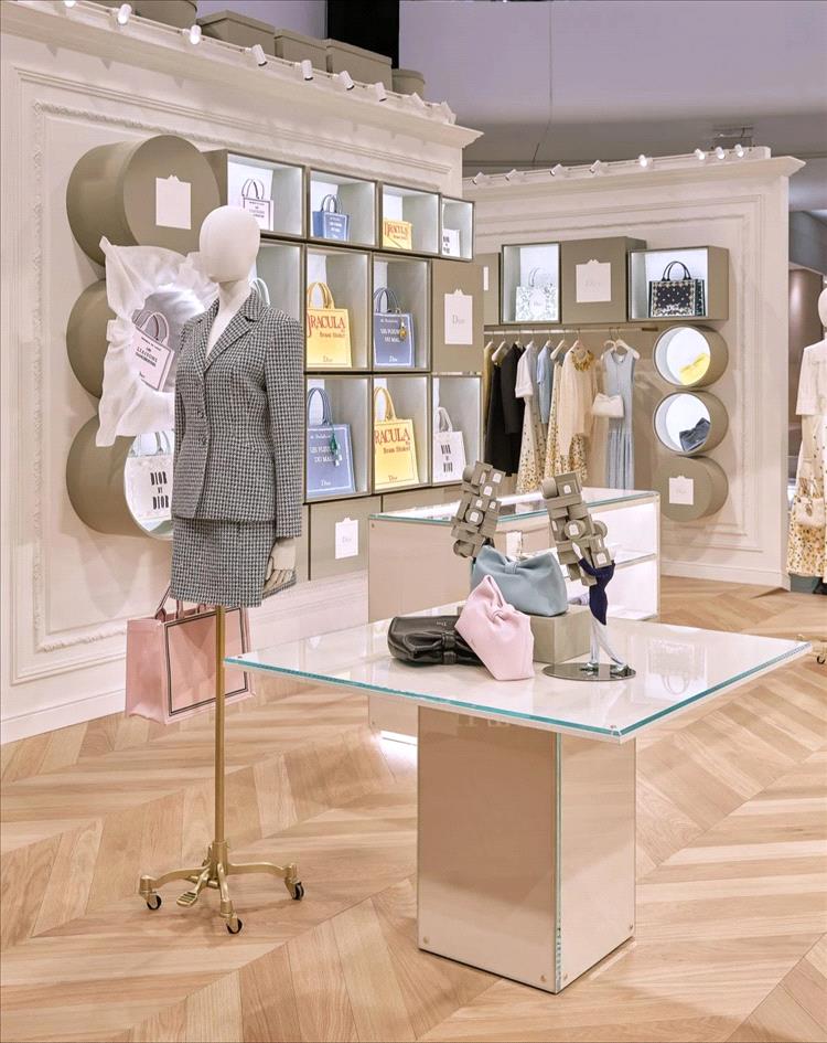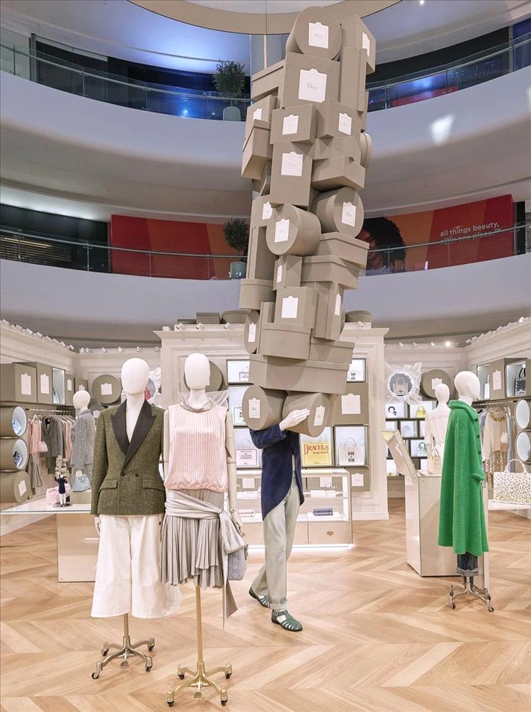 في تحية مفعمة بالبهجة لتراث الدار، تقدّم سينوغرافيا غامرة بأسلوب مرح قراءة معاصرة للصناديق الأيقونية التي ميّزت أول بوتيك لدار "ديور" Dior، المعروف باسم "كوليفيشيه".