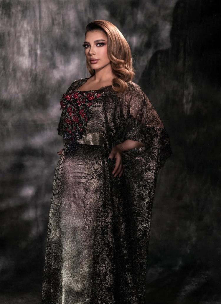 اختارت أصالة فستانًا طويلًا مزينًا بالنقشات من تصميم هويدا بريدي، عكس ذوقها الراقي والميل إلى التصاميم الفنية الهادئة. جاء الفستان بقصة طويلة ومنسدلة تمنح الإطلالة سلاسة وأناقة، مع طابع الكاب من الخلف الذي أضفى لمسة درامية أنثوية. أما الورود المزينة للجهة الأمامية، فشكّلت تفصيلًا رومانسيًا ناعمًا أضفى حيوية على التصميم، ليظهر اللوك متوازنًا بين الكلاسيكية والابتكار.