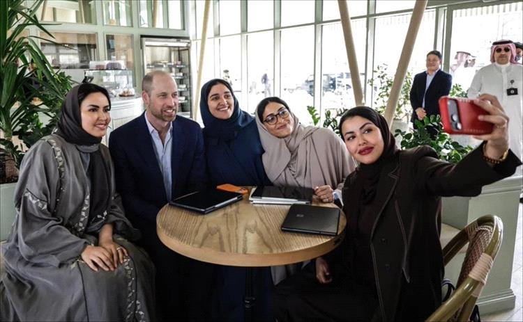وتواجد الأمير ويليام في المقهى خلال جولته برفقة وزير الرياضة الأمير عبدالعزيز بن تركي الفيصل في مشروع المسار الرياضي، أحد المشاريع المفتوحة التي تستهدف دمج الرياضة ونمط الحياة اليومية في الرياض، وبدا أمير ويلز في غاية الراحة والسعادة وهو يجلس في مكان عام ويتحدث مع الفتيات في اجواء مليئة بالعفوية والضحك، في مشهد يعكس بساطة الأمير البريطاني وأسلوبه السلس والتلقائي بعيداً عن الترتيبات الرسمية والضوابط الملكية.