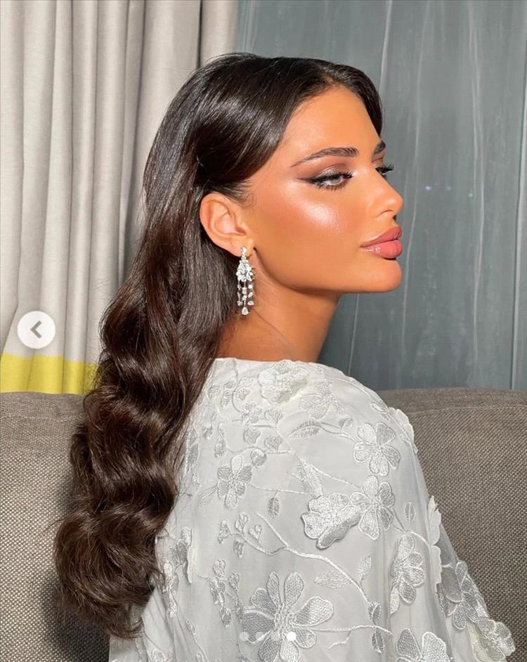 في حال كنت تبحثين عن إطلالة ملكية في يومك الضخم لا تترددي بتجربة تسريحة الريترو هذه على طريقة مايا دياب. تعتمد هذه التسريحة على سحب الشعر من الأمام مع إضافة القليل من البف مع تطبيق الريترو العريض على باقي خصلات الشعر المنسدلة.