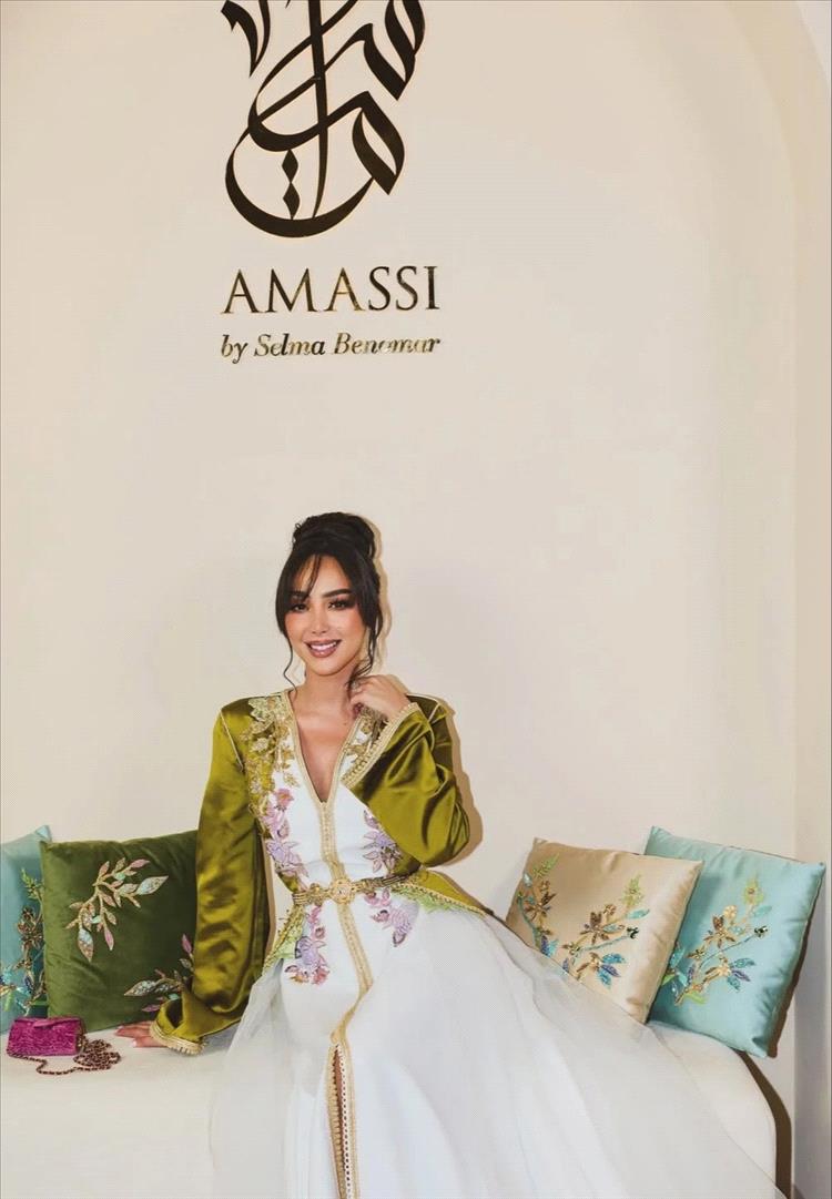 وتألقت الفنانة المغربية بقفطان مبهر باللون الأبيض، يجمع بين التفاصيل التقليدية من التطريزات والشك بالخرز الملوّن والتصميم العصري الذي أضاف لمسة من الفخامة والجمال الى الفستان الأنيق. وجاء الفستان بتصميم ضيّق من الأعلى مع فُتحة V عميقة وبأكمام طويلة باللون الزيتي في مزيج رائع مع الأبيض، وتميّز بحركة الشك بالخرز على شكل ورود باللون الزهري، والتطريزات الذهبية اللافتة والتي منحت الإطلالة المزيد من الفخامة والجمال.