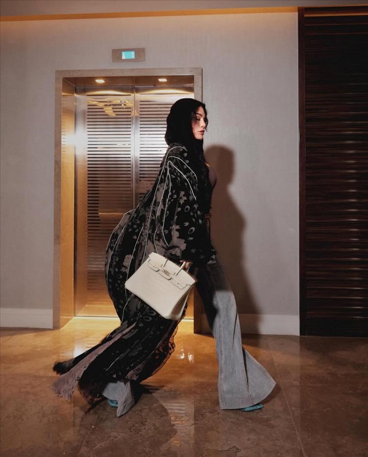 وأكملت "الديفا" إطلالتها الرمضانية الراقية بوشاح أسود اللون غطّت به شعرها الطويل، وحملت في يدها حقيبة باللون الرمادي بتصميم "بيركين" من "هيرميس" (Hermes)، وتزيّنت بمجوهرات رقيقة عبارة عن خواتم ملوّنة تناسب طلّتها النهائية.