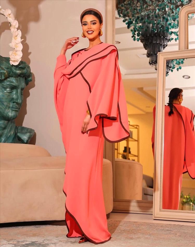 اختارت فوز الفهد فستاناً طويلاً باللون الأصفر مع تفاصيل لافتة عند الخصر، وأضافت عباءة أغمق قليلاً بأسلوب منسدل أنثوي، ليمنح التصميم حركة وانسيابية طبيعية. هذه الإطلالة تبرز كيف يمكن دمج الألوان الزاهية مع القطع الكلاسيكية للحصول على مظهر متوازن وأنيق يناسب الأيام الرمضانية والمناسبات المسائية.