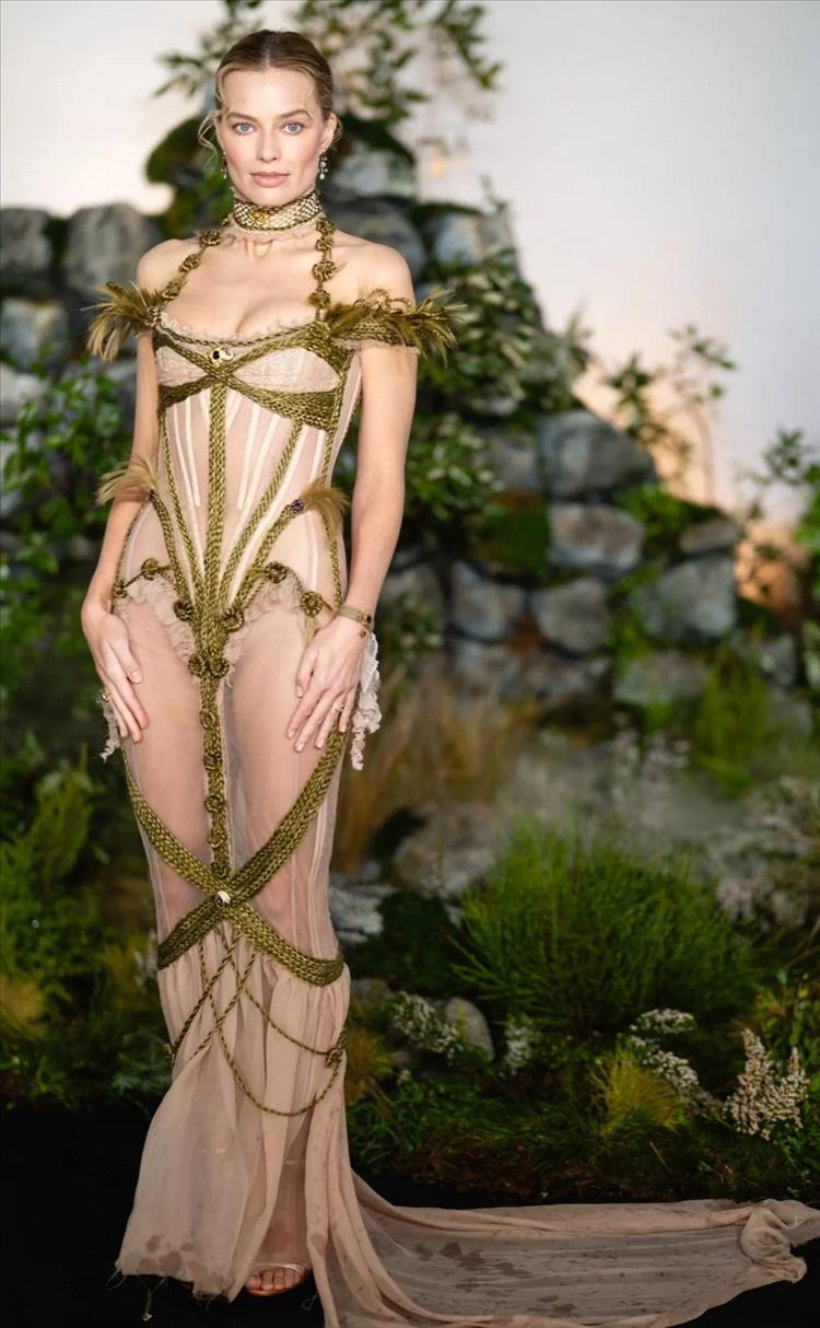 في العرض الأول لفيلم "مرتفعات ويذرينغ" في لندن، تألقت مارغوت روبي بفستان شفّاف من تصميم "ديلارا فينديكوغلو"، مزيّن بتفاصيل شعر مضفّرة، وحذاء بكعب عالٍ من تصميم "مانولو بلانيك"، بالإضافة إلى مجوهرات من أرشيف "بوشرون" و"جيسيكا ماكورماك"، وسوار الحداد الفيكتوري الخاص بشارلوت برونتي.