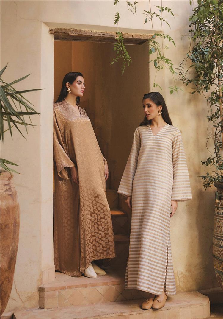 كما تلعب الخامات دوراً مهماً هنا، حيث تبرز الأقمشة الطبيعية مثل الكتّان، القطن، والحرير غير اللامع، لتعكس بساطة راقية تتماشى مع روح الشهر الكريم.