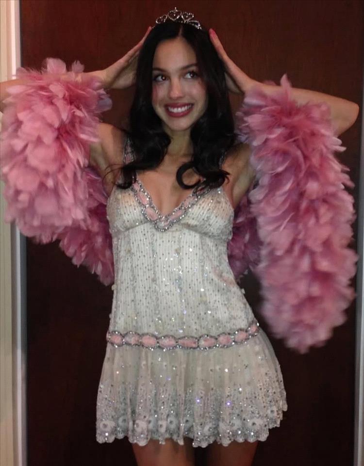 احتفلت نجمة البوب أوليفيا رودريغو بعيد ميلادها الثالث والعشرين في لوس أنجلوس، متألقةً بتاج براق برفقة أقرب صديقاتها. وللمناسبة الخاصة، ارتدت فستانًا قصيرًا من الدانتيل من مجموعة ربيع/صيف 2004 من بلومارين، مصممها المفضل في موضة الألفية الجديدة، والذي كان أيضًا وراء إطلالتها في ليلة رأس السنة. زيّنت تفاصيل وردية اللون فتحة الرقبة على شكل حرف V، وأبرزت قصة الخصر المنخفض، بينما أضفت تطريزات الترتر الفضية وحافة الفستان المُزخرفة لمسةً أنثوية رقيقة.