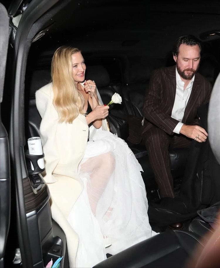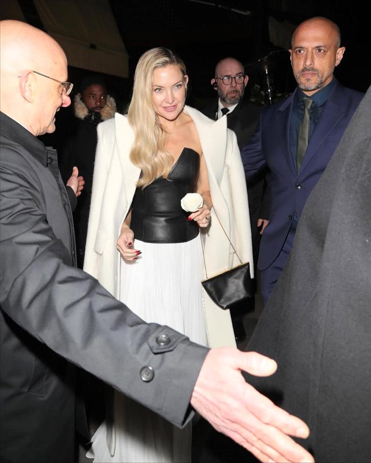 بدت هدسون، البالغة من العمر 46 عامًا، والمرشحة لجائزة أفضل ممثلة عن دورها في فيلم الدراما الموسيقية "سونغ سونغ بلو"، في غاية الأناقة بفستان أنيق ذي صدرية سوداء وتنورة بيضاء انسيابية.