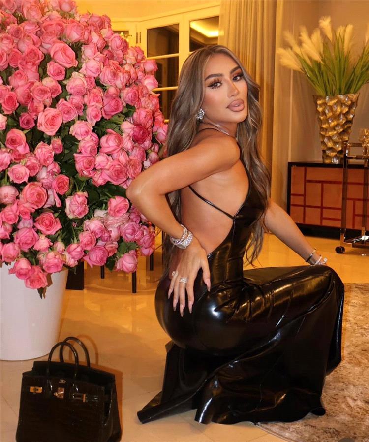 اختارت مايا دياب فستان لاتكس مفتوح عند الظهر، يعكس ثقتها الكبيرة ويمنحها إطلالة جريئة وعصرية. هذا الاختيار يبرز شخصيتها القوية ويضيف لمسة دراماتيكية، ما يجعل كل ظهور لها حديث الصحافة وعشاق الموضة.