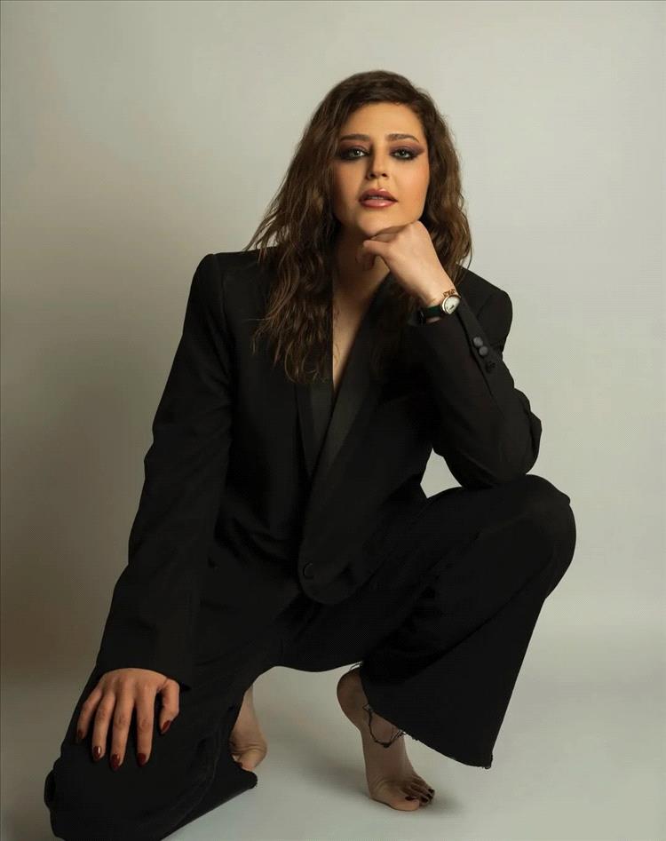 اعتمدت إليانا سعد طقماً كلاسيكياً بلمسة عصرية، تألف من جاكيت بليزر واسعة بقصّة مريحة تركتها مفتوحة بأسلوب جريء، ما أضفى على الإطلالة طابعاً واثقاً وغير متكلّف. ونسّقت معها بنطلوناً أسود بقصّة مستقيمة وكلاسيكية وواسعة، عزّزت الخطوط النظيفة لـ"اللوك" ومنحته توازناً بين العملية والأناقة.