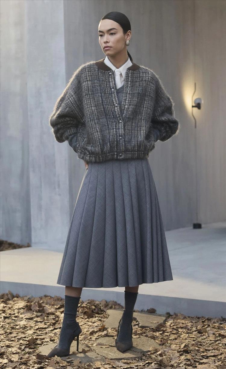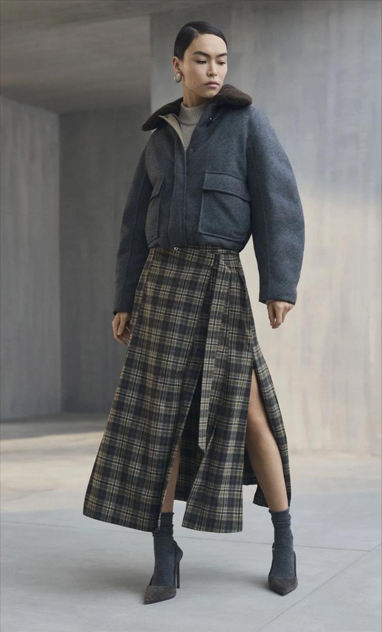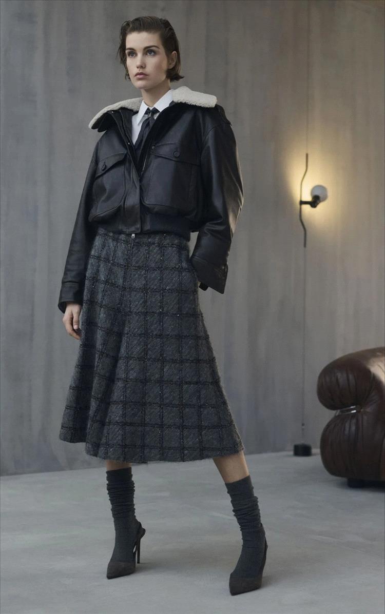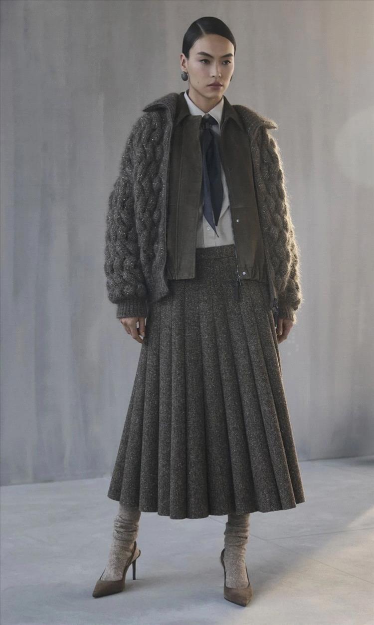 مستوحاة من الريف البريطاني، يُعاد تفسير الرموز التراثية مثل الشِكّات، Houndstooth، والتارتان من خلال تفصيلات ناعمة وهياكل انسيابية. تلتقي التأثيرات الريفية الرومانسية مع دقة الخياطة الأنيقة، لتخلق تباينات متوازنة تجمع بين الرقة والثقة.