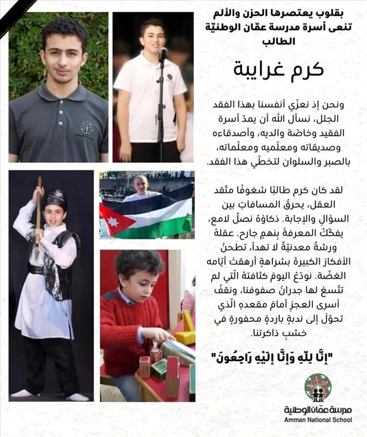 وختم: "رحم الله الشاب كرم غرايبة، وصبر أهله على مصابهم، وأعان الله الضحايا الذين يتعرضون يومياً ومنذ زمن طويل في بلادنا على وجه الخصوص للتنمر والتشبيح، في ظل غياب كامل للحماية والقوانين اللاجمة، والحصانة الذاتية، وخصوصاً الضحايا من الإناث اللاتي يبلغ عليهن التنمر والتشبيح في منطقتنا قمماً عالية (سافلة) في البذاءة والوساخة وهتك الأعراض".
