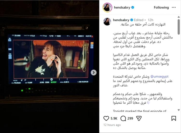 واختتمت هند صبري تعليقها بالقول: "للجمهور، شكراً على حبكم ودعمكم واستقبالكم ليا من جديد، وجودكم وتشجيعكم فرق معايا أكتر ما تتخيّلوا".