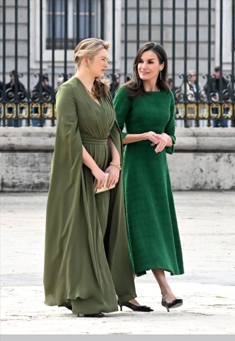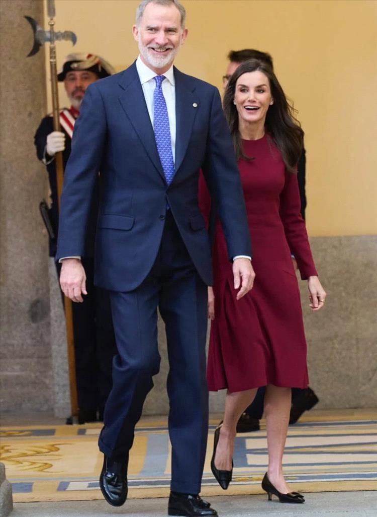 تتميز إطلالات الملكة ليتيزيا بالاتزان والذوق الرفيع، ويأتي اختيارها للفساتين الميدي ليعكس هذا التوازن المثالي بين الأناقة والعملية. فطول الفستان الذي يصل إلى ما دون الركبة يمنح الإطلالة طابعاً راقياً ومحافظاً، وفي الوقت نفسه يبقى عصرياً ومريحاً للحركة.