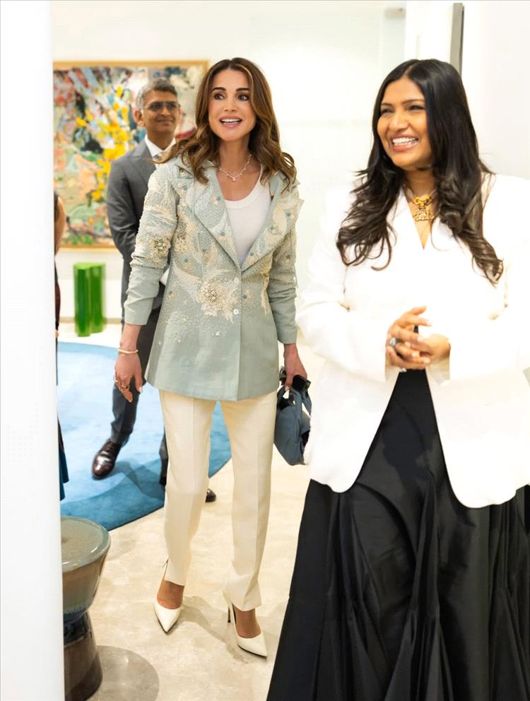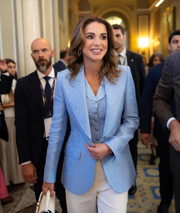 لإطلالة أكثر عصريةً، تمزج الملكة رانيا أحياناً البليزر مع خامة الدنيم. البليزر الدنيم يوازن بين الطابع الكلاسيكي والحيوية اليومية، فيصبح خياراً مثالياً للخروجات الرسمية غير التقليدية أو الاجتماعات العائلية المريحة.