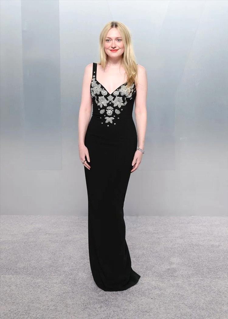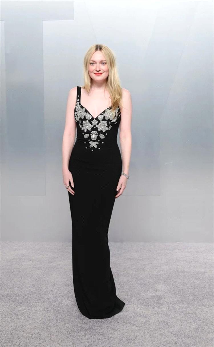 ظهرت الممثلة داكوتا فانينغ Dakota Fanning بفستان أسود أنيق من زهير مراد Zuhair Murad ضمن مجموعة ربيع 2026 الجاهزة. جاء الفستان بقصة كلاسيكية طويلة مع فُتحة صدر عميقة، وزُيّن الصدر بتطريز فضي دقيق على شكل زهور متشابكة. التصميم جاء أنيقاً وبسيطاً في الخطوط، لكنه معقّد في التفاصيل الدقيقة التي أعطت الإطلالة طابعاً فاخراً وراقياً، مع إبراز الرقي الكلاسيكي الذي يميز تصاميم زهير مراد.