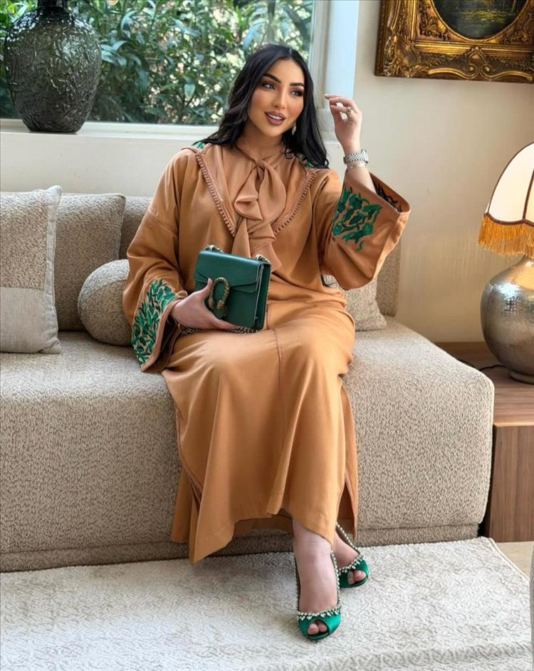 قفطان ترابي بلمسات فنية مميزة