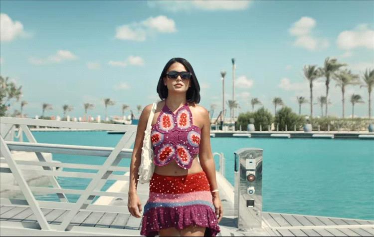 ظهرت أسماء جلال بكروب توب قصيرة باللونين الزهري والبرتقالي، نسّقتها مع تنورة قصيرة بأسلوب الكشاكش، جاءت مقلّمة بالعرض ومزينة بنقاط البولكا دوتس. هذا "اللوك" جمع بين الحيوية والأنوثة الجريئة، وقدّم طابعاً شبابياً لافتاً لا يمكن تجاهله.