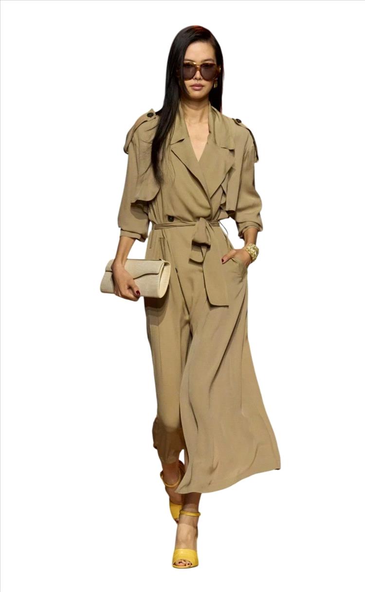من أبرز الاتجاهات التي ظهرت بقوة هذا الموسم، الترنش القصير أو الـ Cropped Trench. هذا التصميم يمنح الإطلالة طابعاً عصرياً وحيوياً، ويُعدّ خياراً مثالياً للتنسيق مع السراويل عالية الخصر أو التنانير الطويلة. كما يضفي الترنش القصير لمسةً شبابية على الإطلالة، ويمنحها خفّة وأناقة من دون التخلّي عن الطابع الكلاسيكي الذي يميز هذه القطعة. وغالباً ما يأتي هذا التصميم بألوان حيادية مثل البيج والكاكي، لكنه يظهر أيضاً بدرجات جريئة تمنحه شخصية مختلفة.