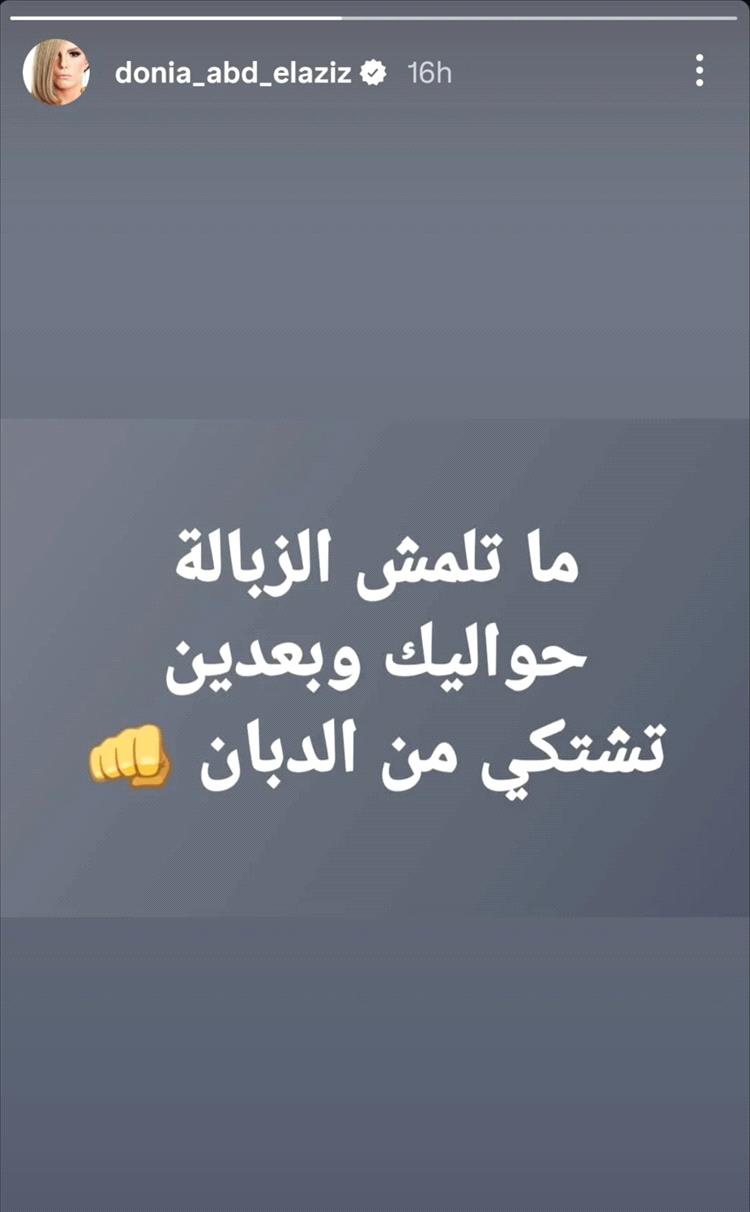 وكتبت دنيا في رسالتها قائلة: "ما تلمش الزبالة حواليك وبعدين تشتكي من الدبان".