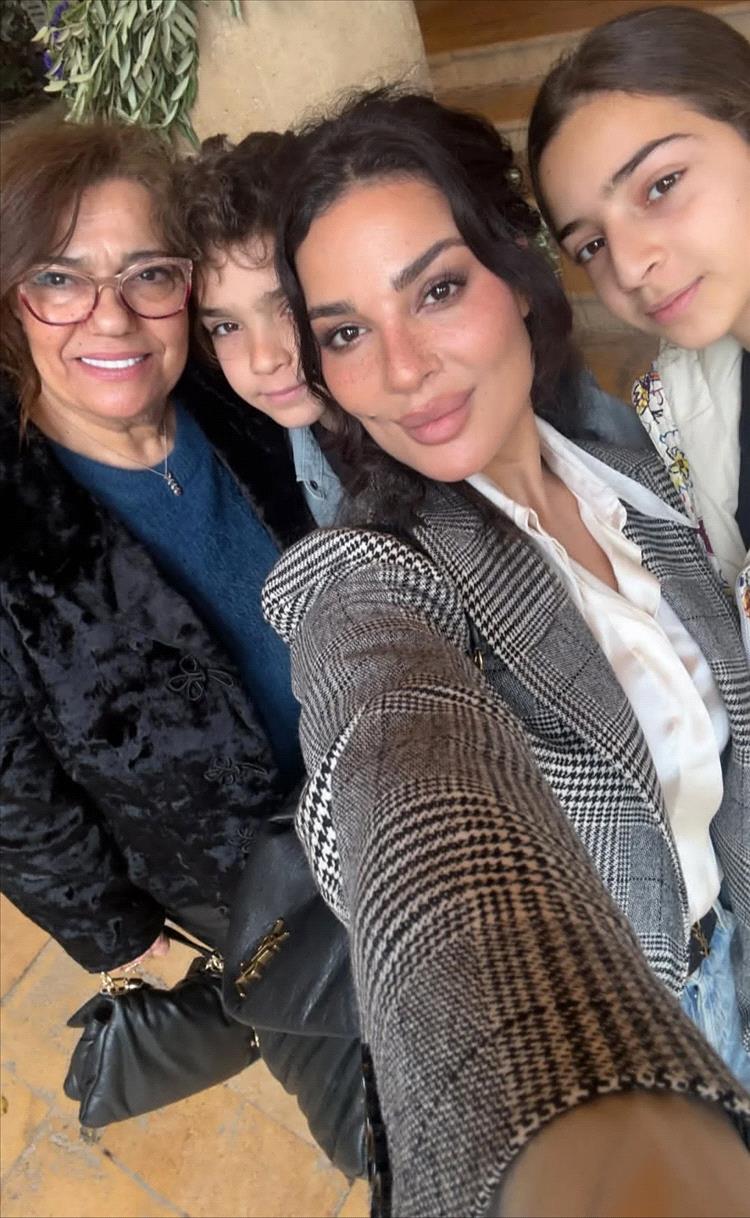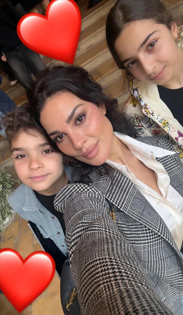 اختارت النجمة نادين نسيب نجيم مع ولديها هافين وجيوفاني لأحد الشعانين في بيروت، إطلالات شتوية كاجوال ناعمة ونسّقتها بأكسسوارات رقيقة.