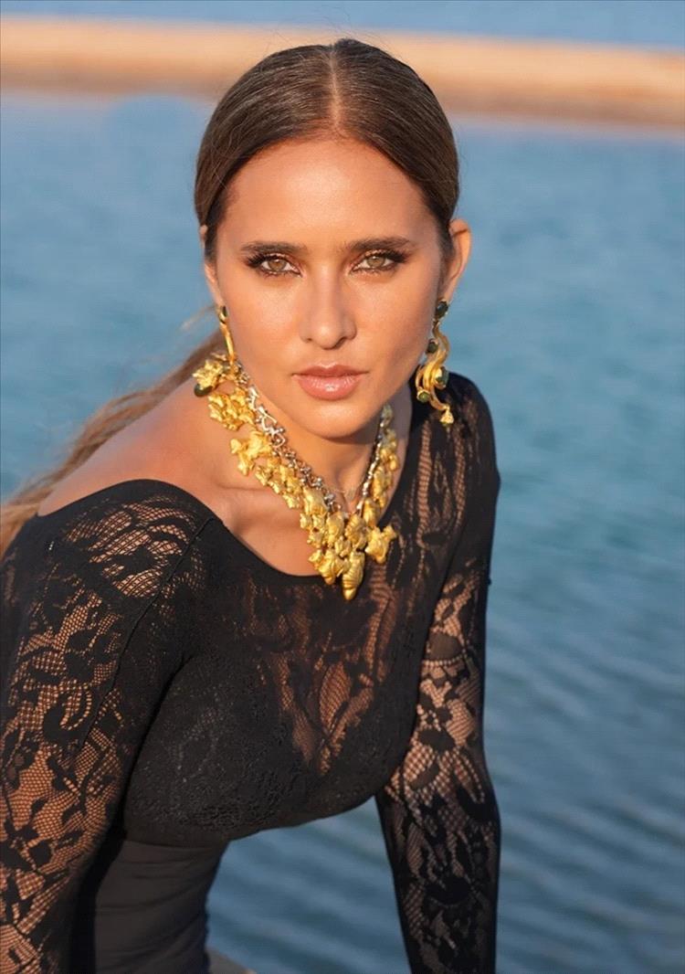 ظهرت نيللي كريم بإطلالة لافتة من خلال فستان طويل من الدانتيل الأسود. يتميز التصميم بقصة ضيّقة وقصيرة جداً، مع ياقة على شكل قلب من الدانتيل وأكمام من الخامة نفسها، بينما تنسدل التنورة بأسلوب طويل يضيف تبايناً جذاباً بين الجرأة والطول الكلاسيكي.
