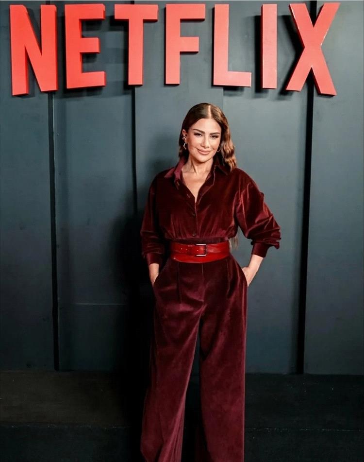 من أبرز إطلالاتها، الفساتين المستوحاة من البليزر بقصّات قصيرة، والتي جمعت بين الطابع الرسمي والأنثوي. هذا اللوك يعكس شخصية قوية وواثقة، خاصة مع القصّات المحددة التي تبرز الخصر وتمنحها حضوراً لافتاً.