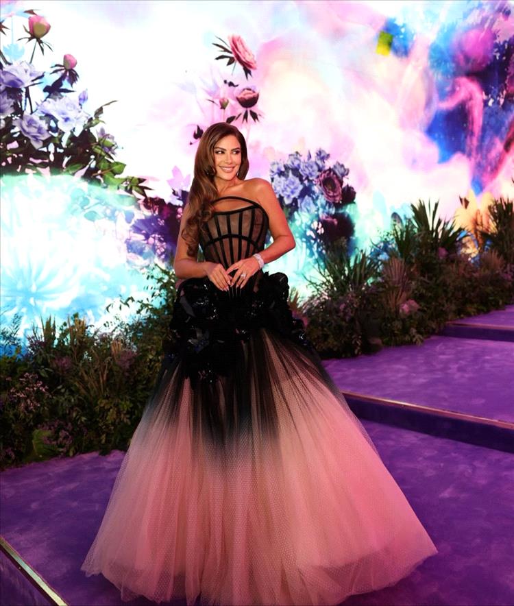 أما الفساتين الطويلة ذات الطابع الملكي، فكانت عنوان الفخامة في إطلالاتها. بتفاصيلها الغنية وقصّاتها الواسعة، منحتها حضوراً مهيباً يعكس أناقة كلاسيكية خالدة.
